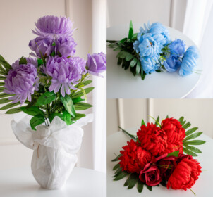 BK01 Букет композиція з латексних калл, хризантем і троянд | В-60 см |9 гілок| виробник-Польща 5шт/уп