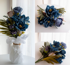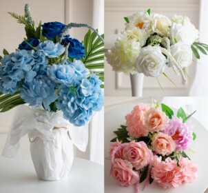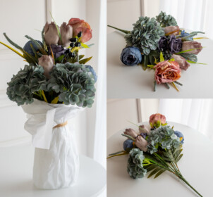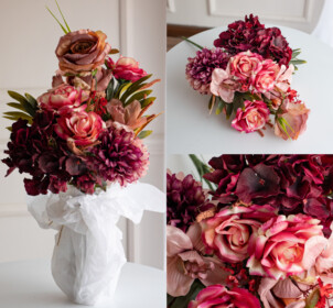 BK025-20 Штучний букет-композиція з магнолій, троянд та гортензії | В-60 см |