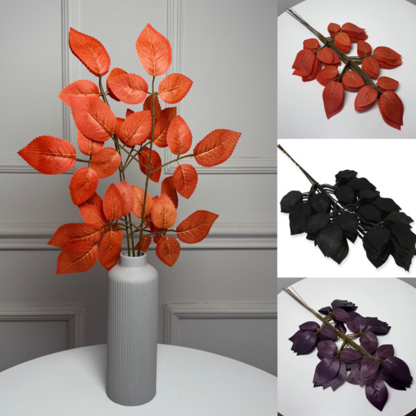 Штучна гілка троянди — вишуканий та елегантний елемент декору, який додасть композиціям загадковості, готичного шарму та сучасного стилю. Глибокий чорний колір надає квітці унікального вигляду, роблячи її чудовим вибором для тематичних подій, інтер’єрного оформлення та святкового декору.