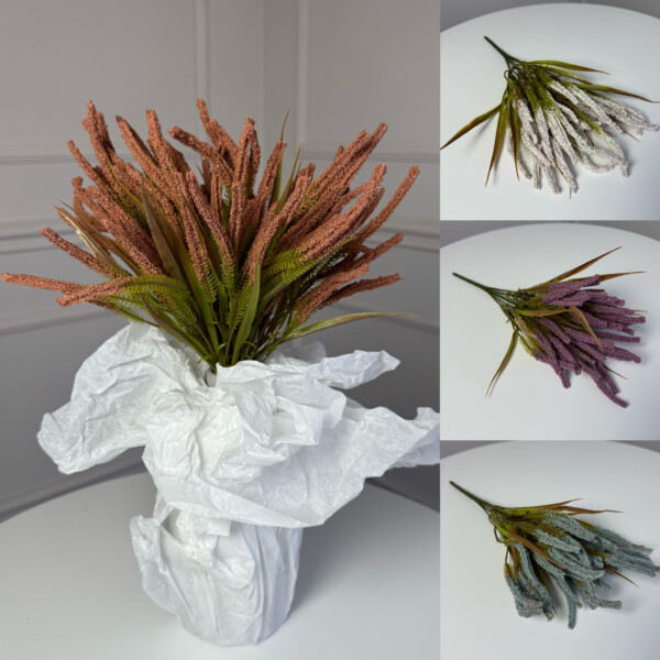 Искусственная ветка с имитацией лисохвоста — оригинальный декоративный элемент, который добавляет легкости, текстуры и природной красоты любой композиции. Мягкие пушистые «хвостики» создают ощущение легкости и воздушности.