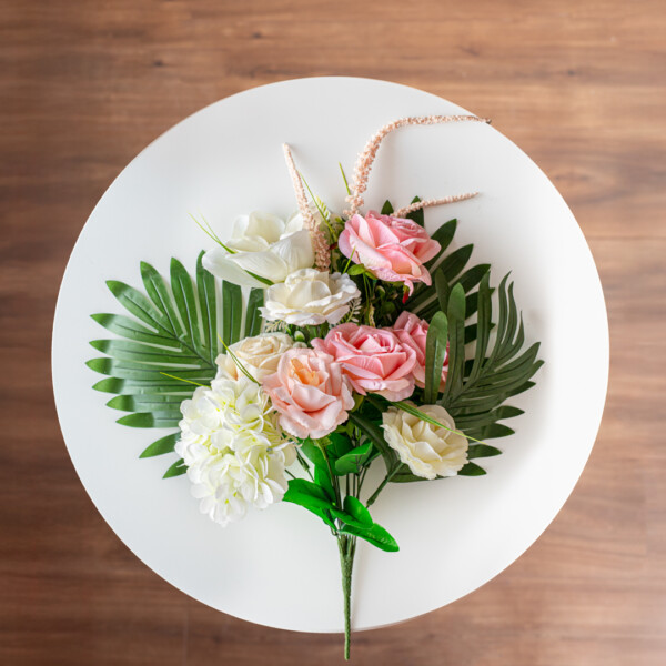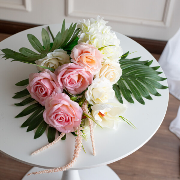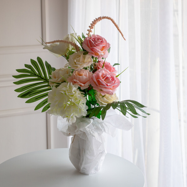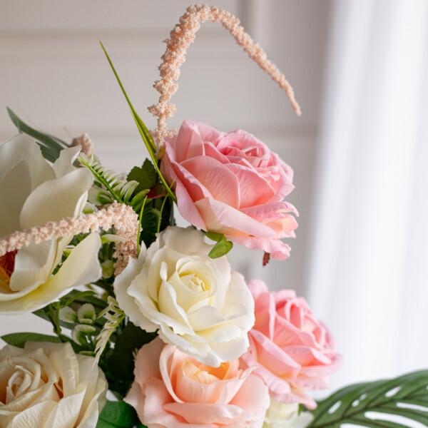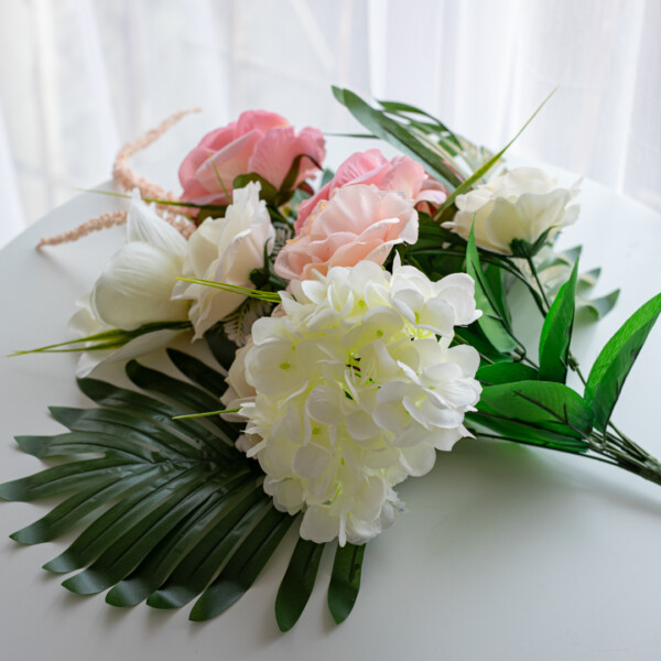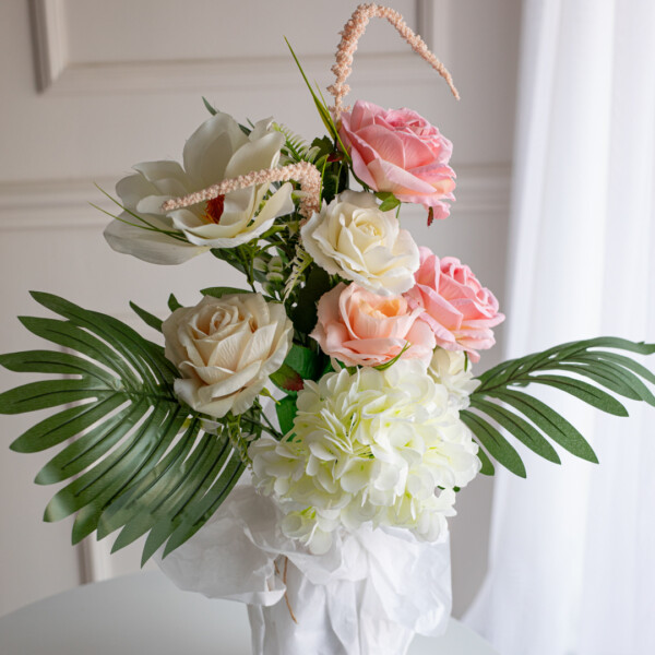 Изысканный букет из искусственных цветов создан для тех, кто ценит эстетику и практичность. Его реалистичный вид станет украшением любого интерьера или события.