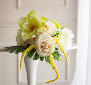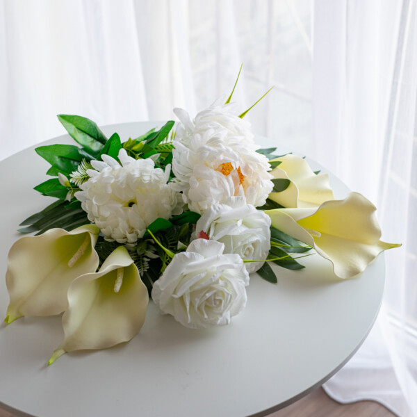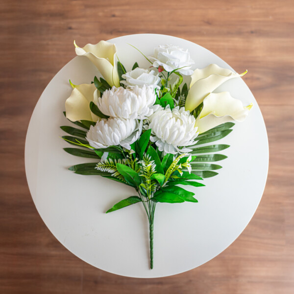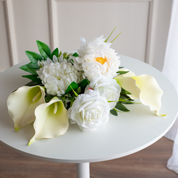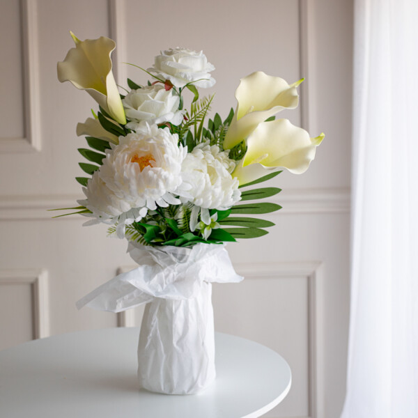Стильный букет из искусственных цветов прекрасно подойдёт для фотозон, праздничного оформления или подарка близким. Это универсальный декор, который всегда выглядит элегантно.