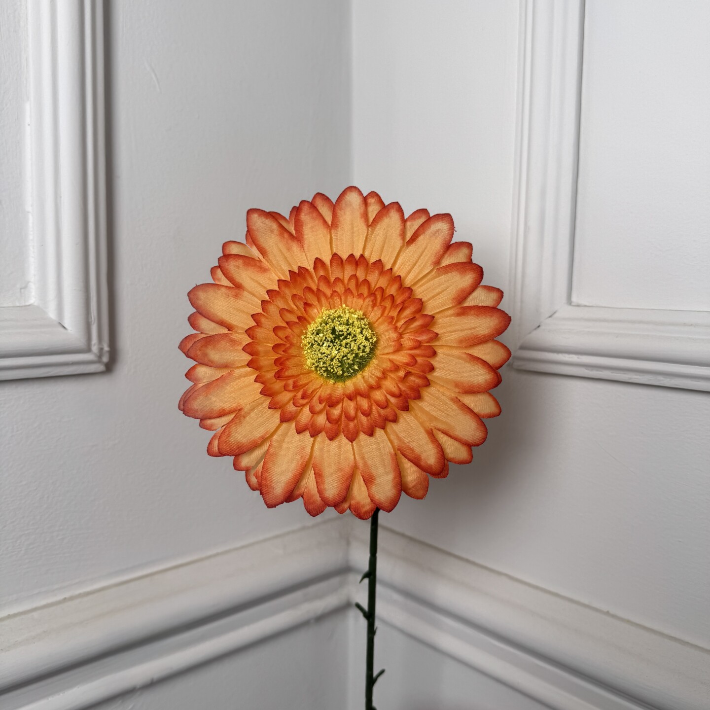 Искусственная головка герберы диаметром 15 см — это яркий и реалистичный декоративный элемент, который идеально подойдёт для создания цветочных композиций, букетов или оформления интерьера. Лепестки имеют естественную форму и насыщенный цвет, максимально приближенный к живому цветку. Изготовлена из качественного материала, хорошо держит форму, не мнётся и сохраняет привлекательный внешний вид на протяжении длительного времени. Отлично подходит как для домашнего декора, так и для оформления праздничных мероприятий.